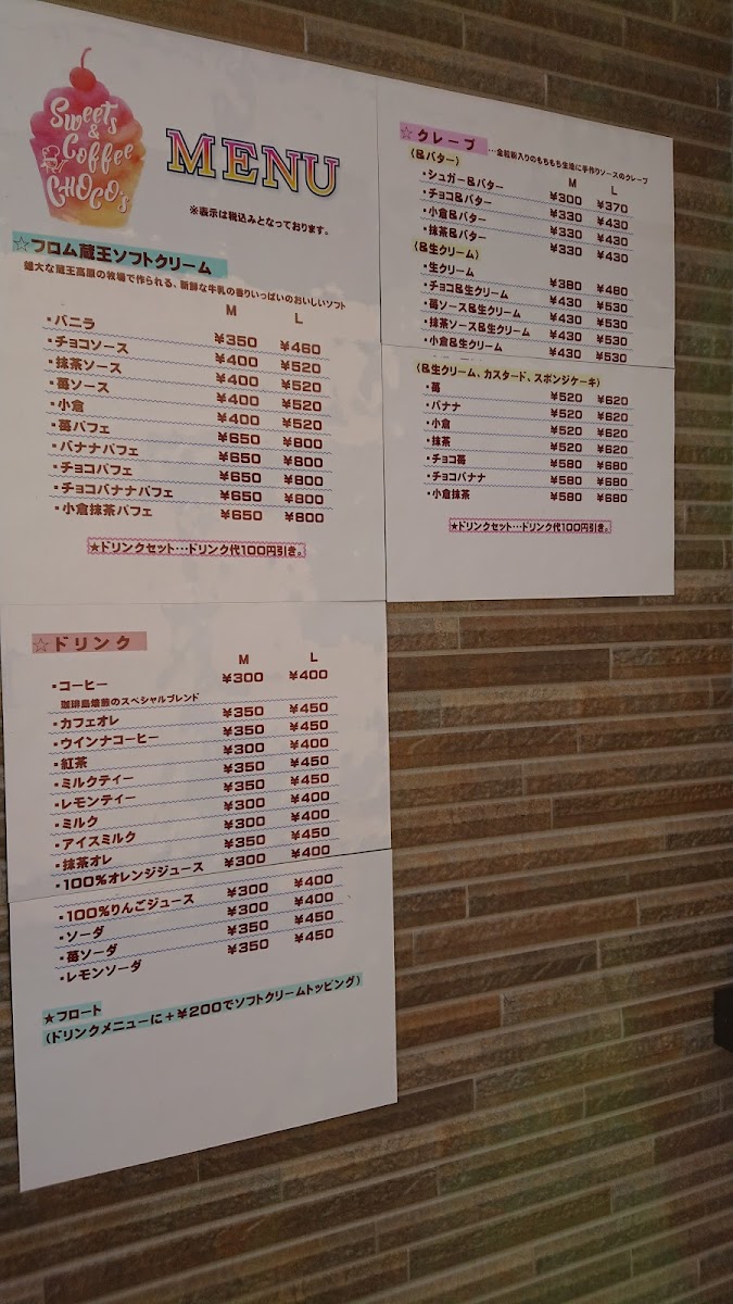 sweets&coffee CHOCO's Menu